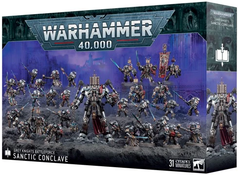 This boxed set builds a mighty Grey Knights force for use in games of Warhammer 40,000. Led by a Grand Master in Nemesis Dreadknight,